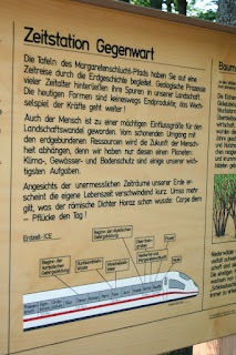 Von der Buntsandstein-Zeit erzählen die ersten Tafeln, und von „Pangäa“, dem Riesenkontinent, in dem vor 250 Millionen Jahren noch die gesamte kontinentale Landmasse vereinigt war. Dort trugen nordwärts strömende Flüsse Sand aus südlichen Gebirgen heran, schoben die Ablagerungen über eine wüstenhafte Ebene und stapelten sie nach und nach Hunderte von Metern übereinander. Seither hat sich die Landschaft vollends gewandelt. Aus den Flussablagerungen Pangäas ist längst das rötliche Gestein unseres Buntsandstein-Odenwaldes geworden, wie die Tafeln erläutern. Nun öffnen sich weitere Kapitel der örtlichen Erdgeschichte, die Geburtsstunde des Neckartals steht jetzt im Fokus der Betrachtung: Als kleines Flüsschen begann der wilde Neckar vor gut und gern 30 Millionen Jahren, allmählich konnte er seinen Lauf verlängern und sich tief in die Sandsteinschichten einsägen. Heute ist er gezähmt, eine stauregulierte Schifffahrtsstraße. Die Pulttafel mit Blick auf die Guttenbacher Staustufe demonstriert, wie hier große Binnenschiffe geschleust werden.